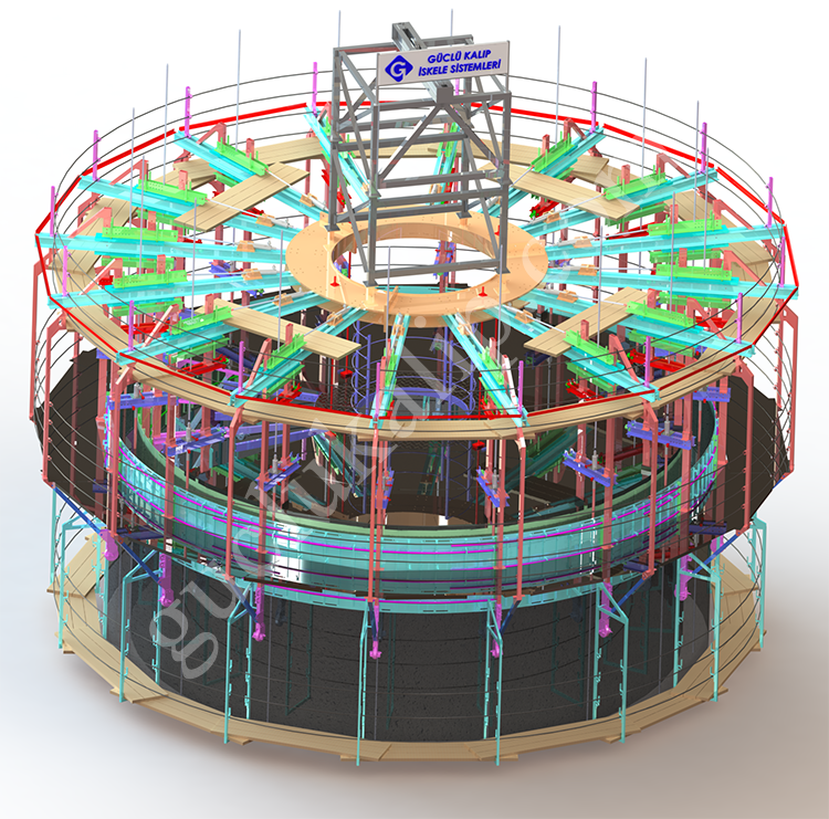 The system is an adaptation of our slipform system to single or double sided curved walls with special and stronger steel components and lifting hydromechanics.